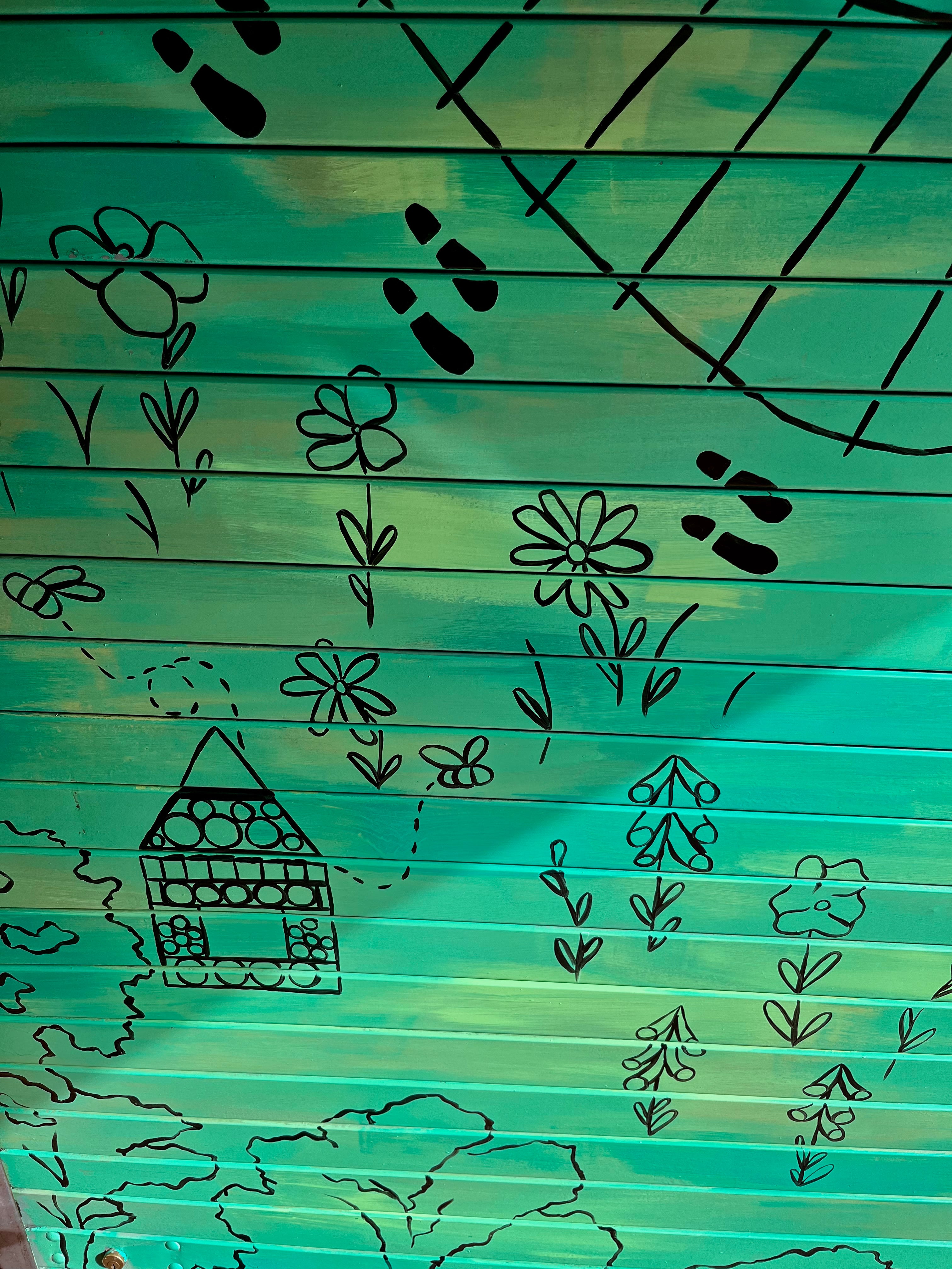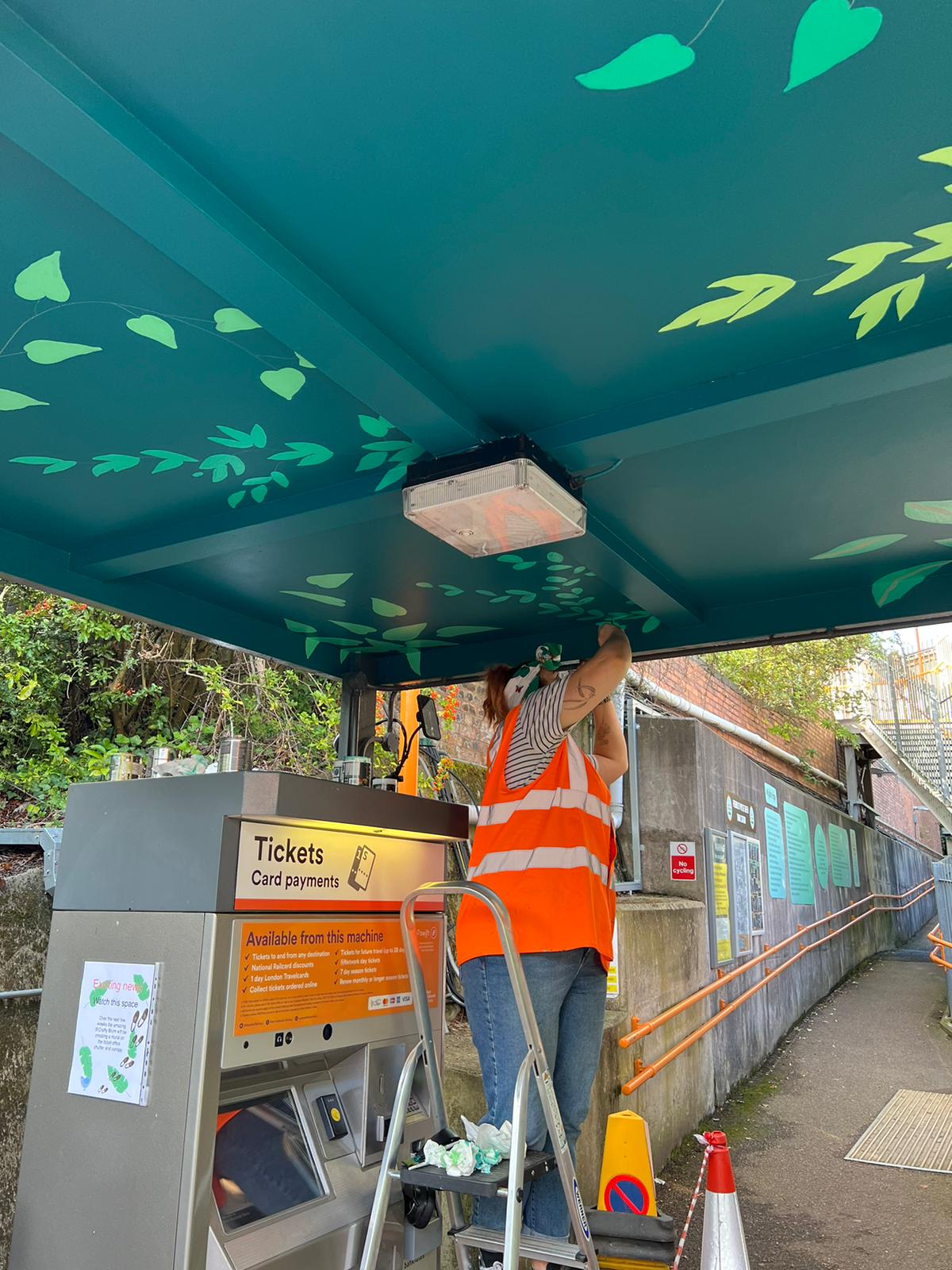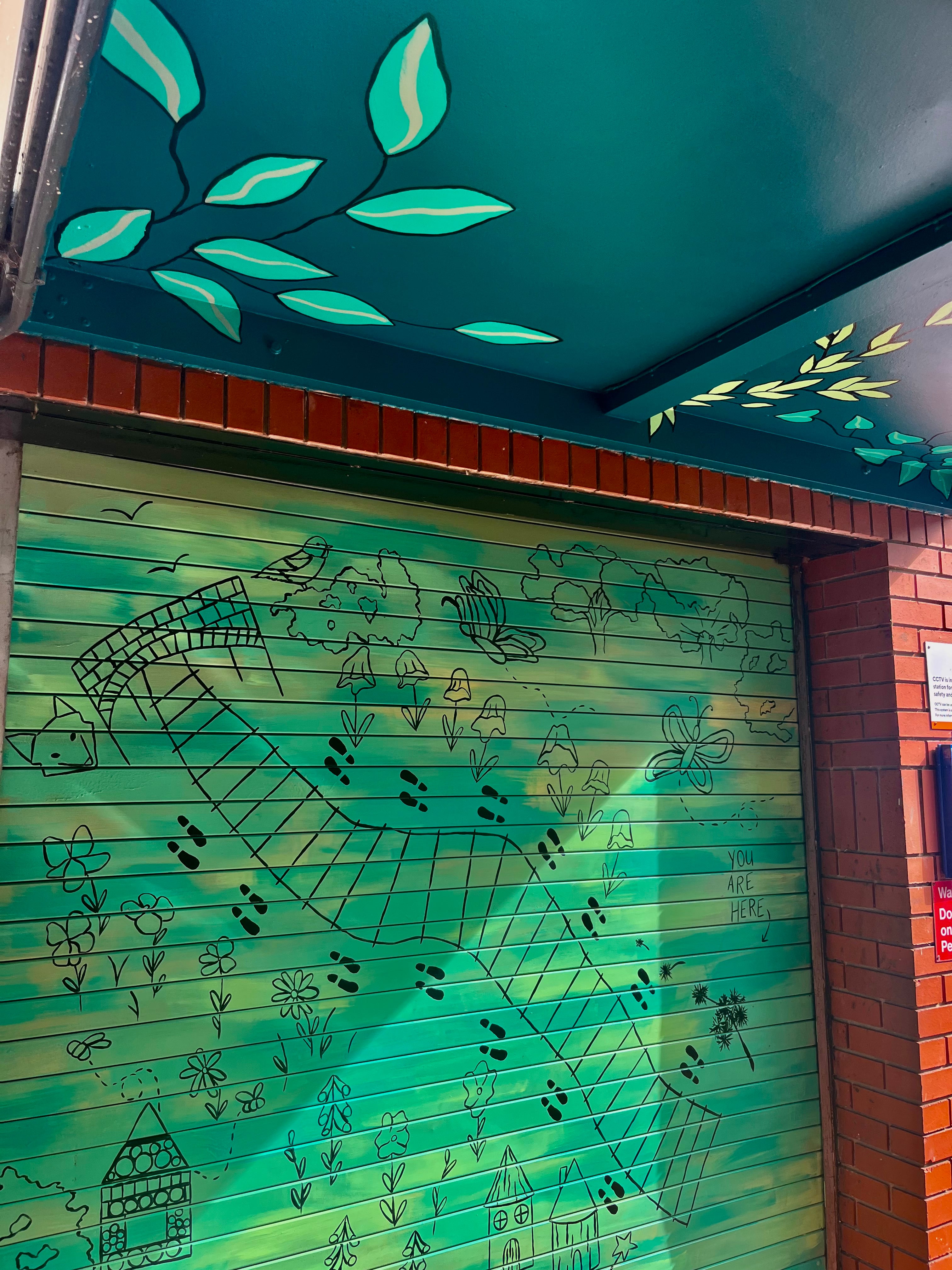 "Kate was amazing, she listened to our requirements and suggested ways to overcome some of the problems encountered along the way. The mural spans the canopy and shutter of the ticket office and is a combination of her trademark botanicals and an interpretation of the station‘s artwork, planting, poetry and nature created into a beautiful map," Nikki.