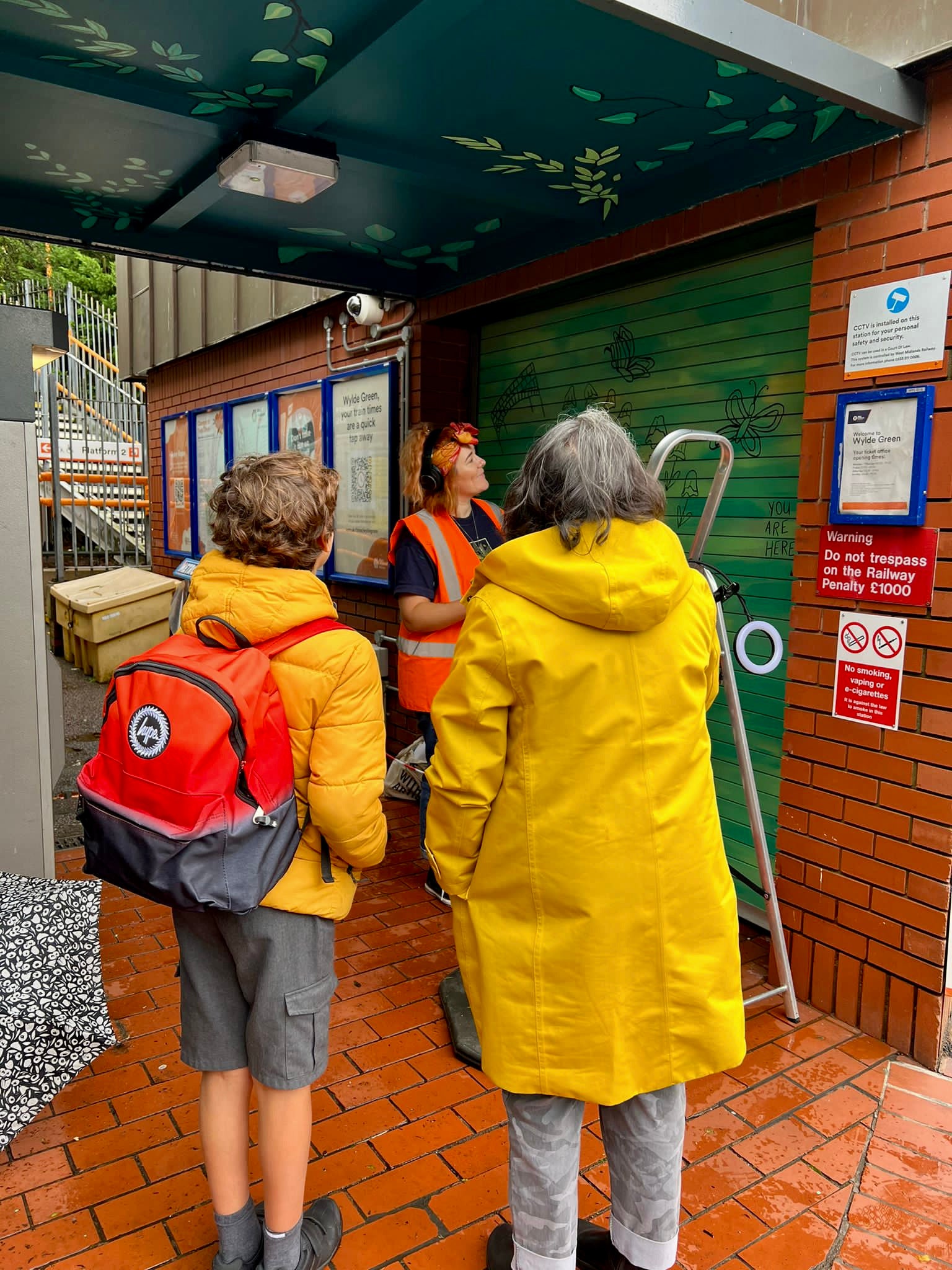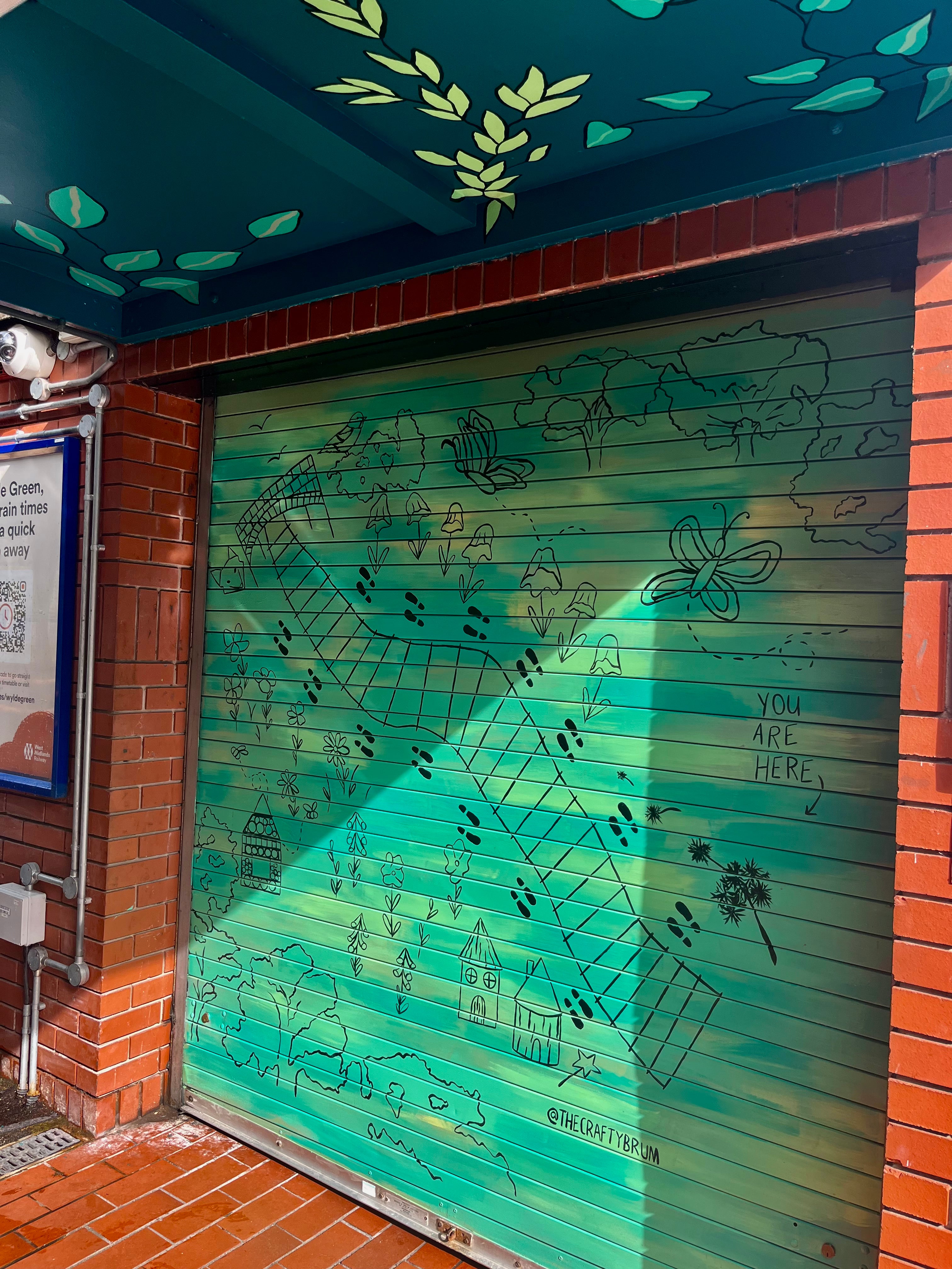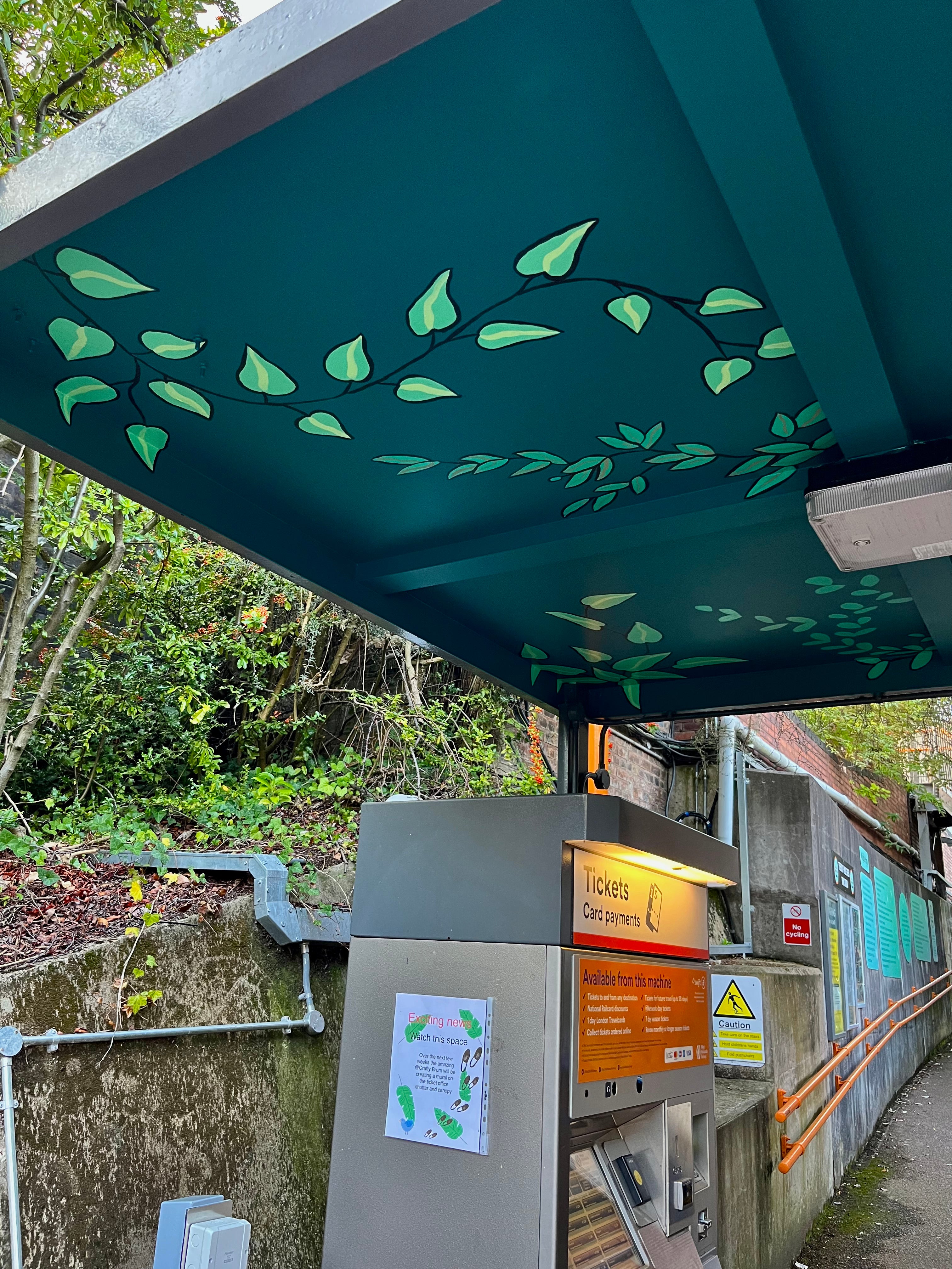 Friends of Wylde Green Train Station were successful in a proposal to Birmingham City Council, Celebrating Communities 2022 fund earlier this summer and wanted to create new artwork at the Train Station. We approached and enlisted Kate,’The Crafty Brum’ to design ‘A Station Stroll’ mural, the brief was to fit with the given aim: