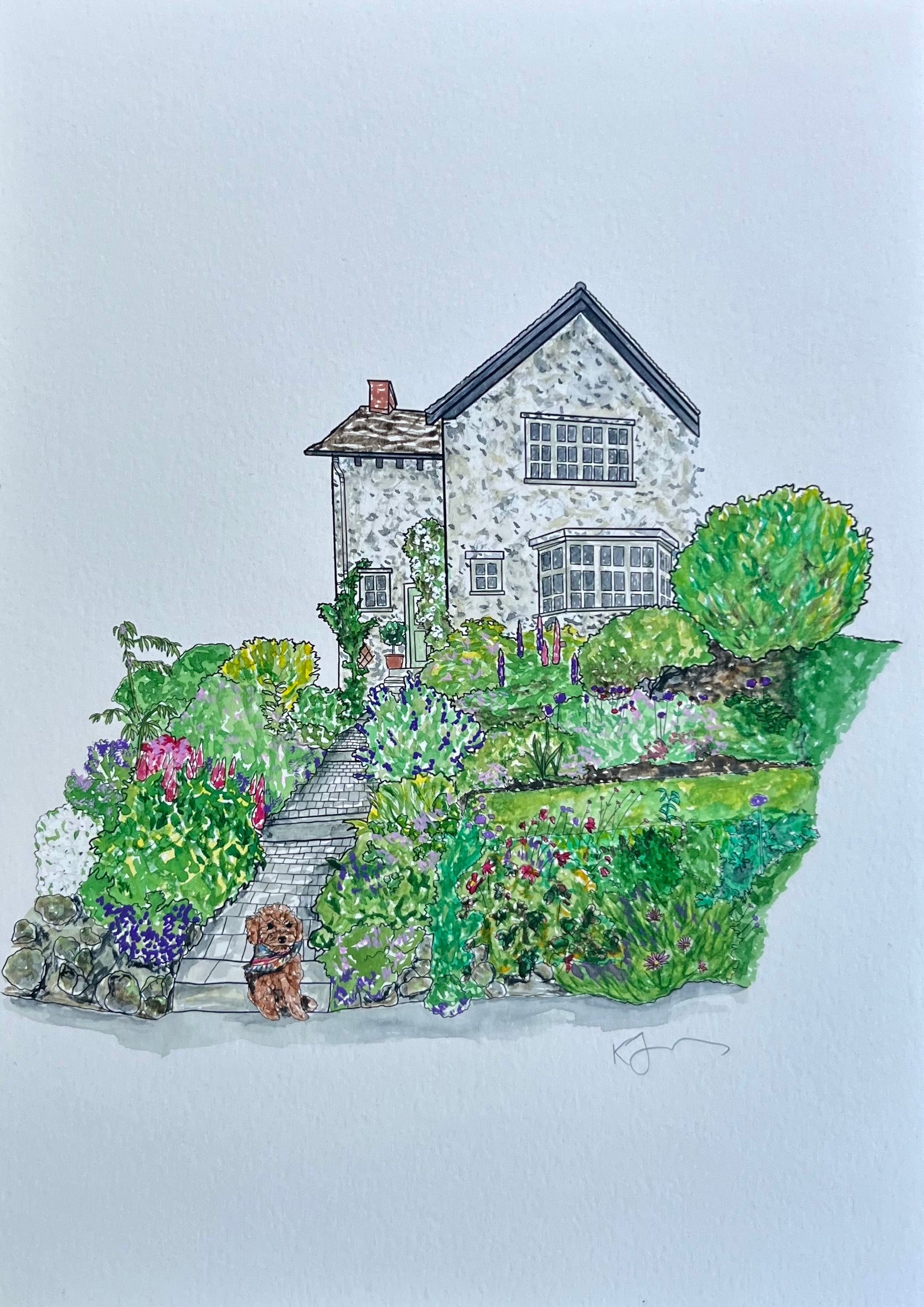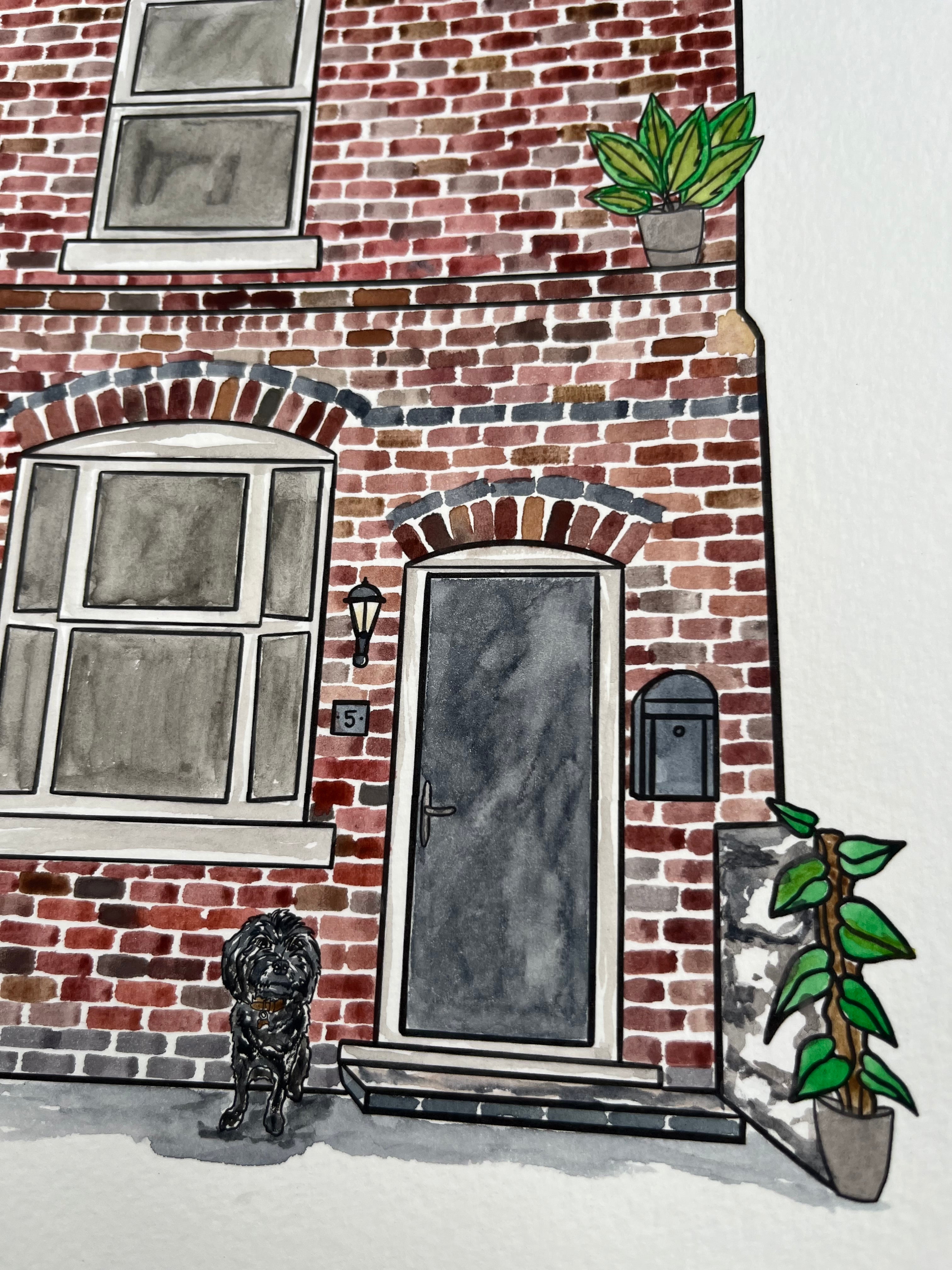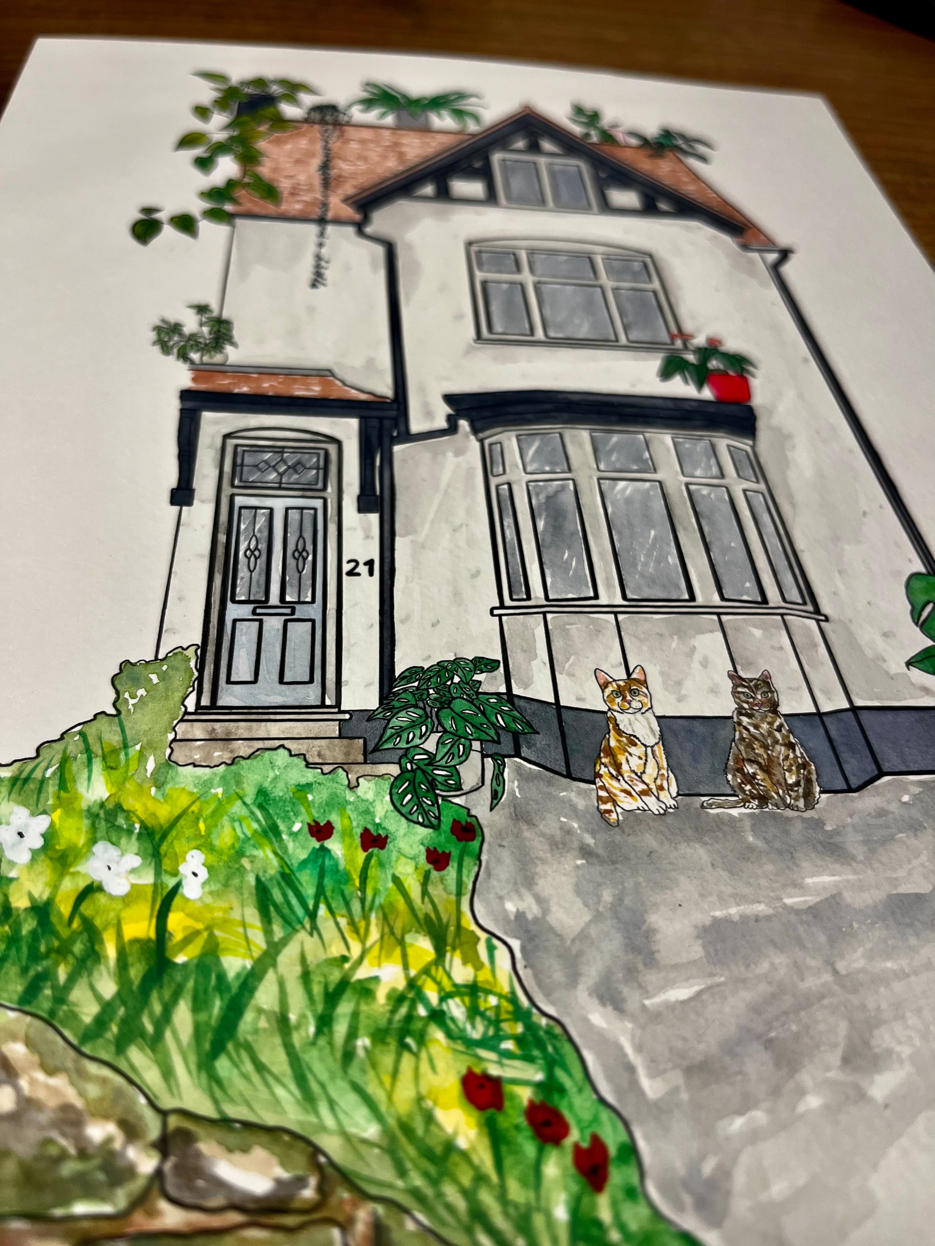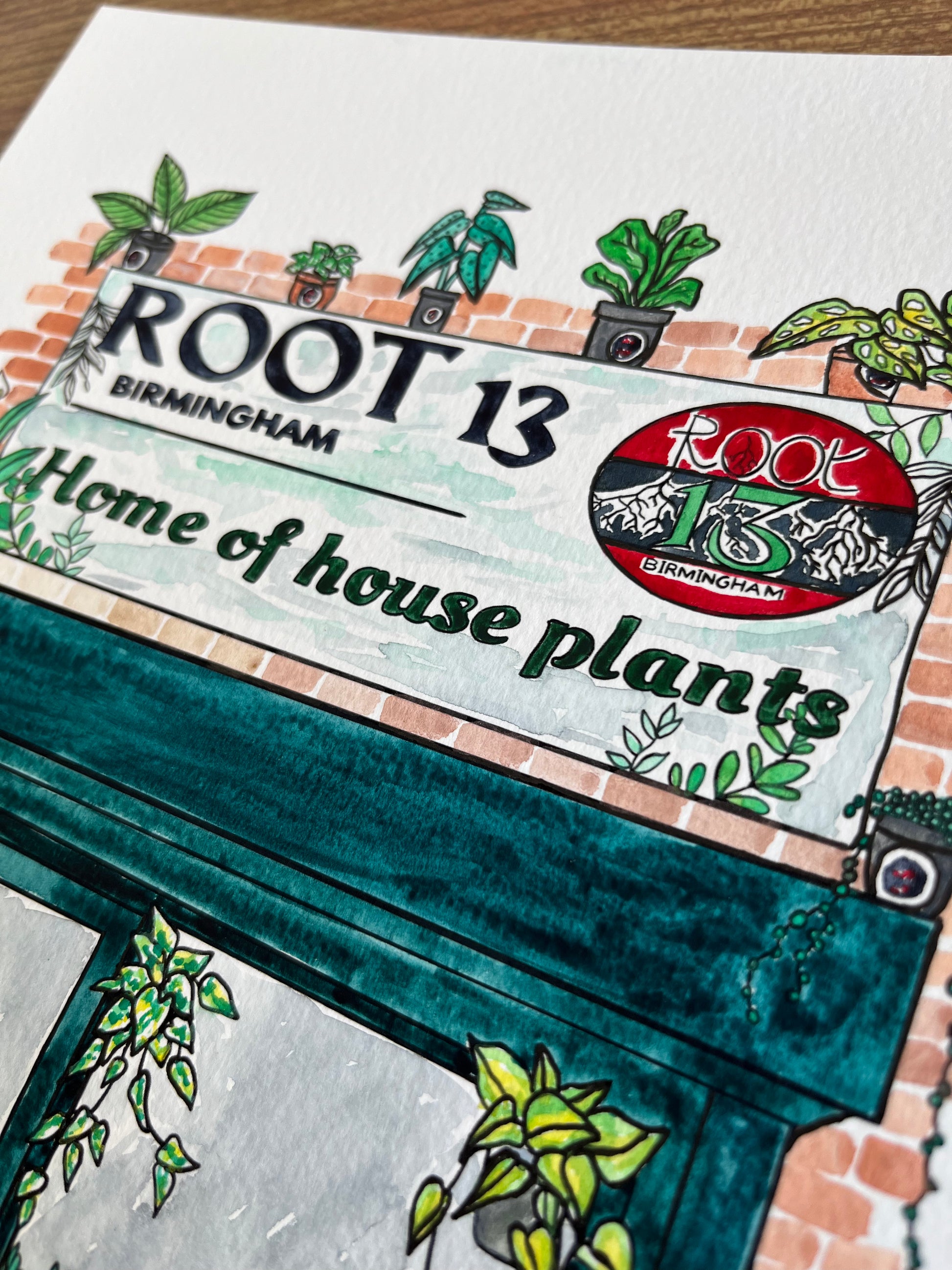 All homes are available with or without plants in my Crafty Brum style in A4. The pieces are hand drawn and painted with a watercolour finish.