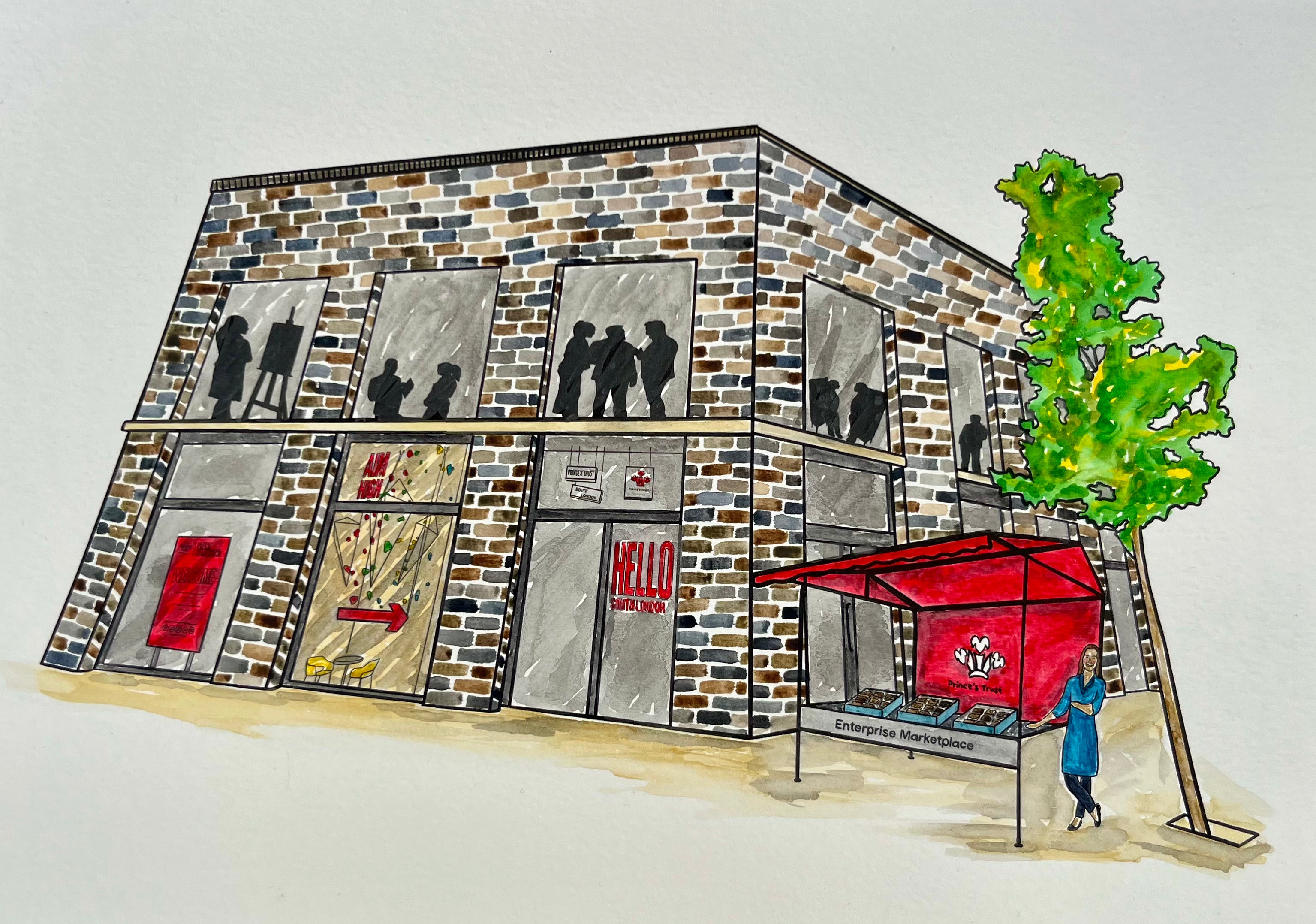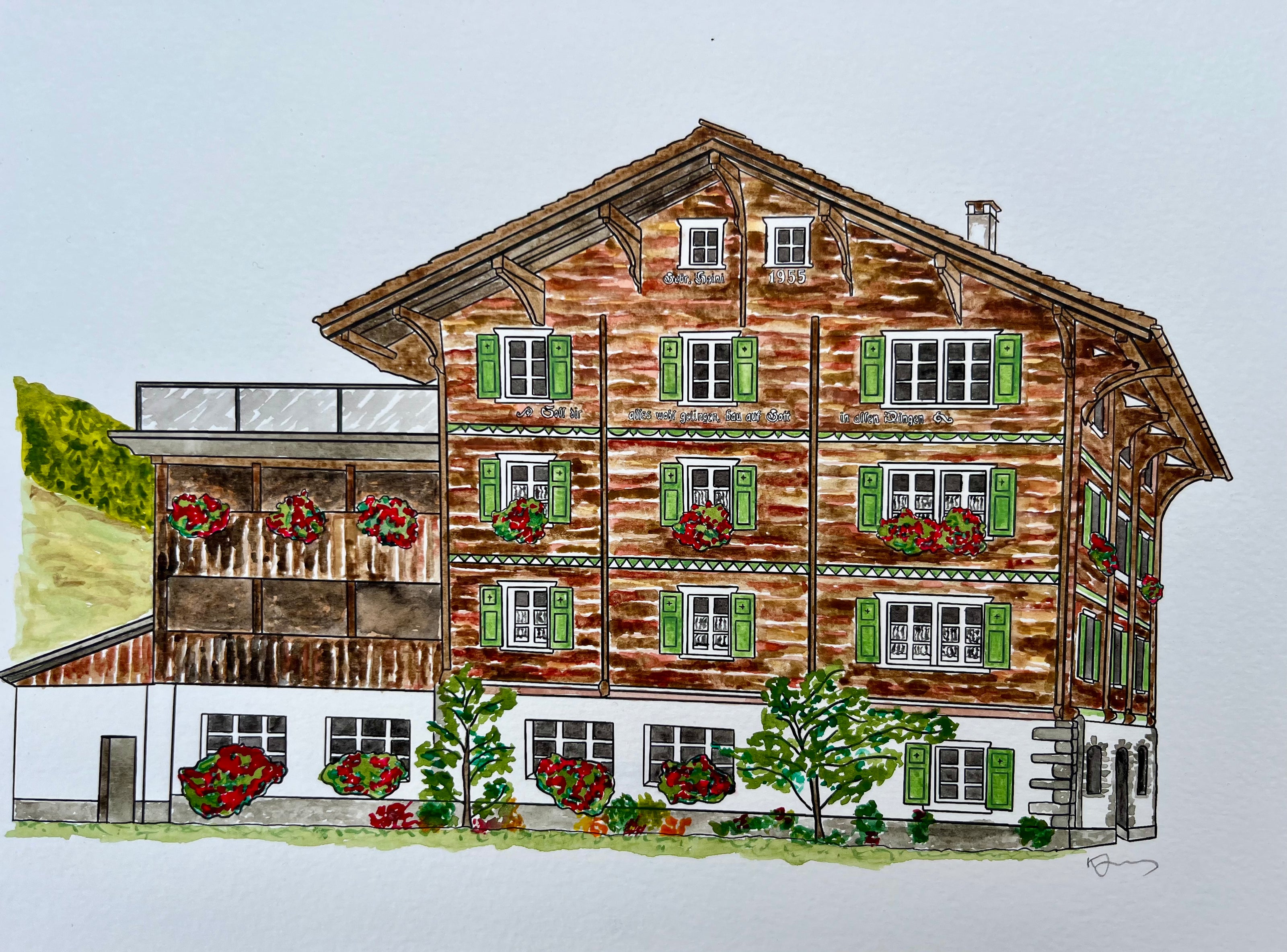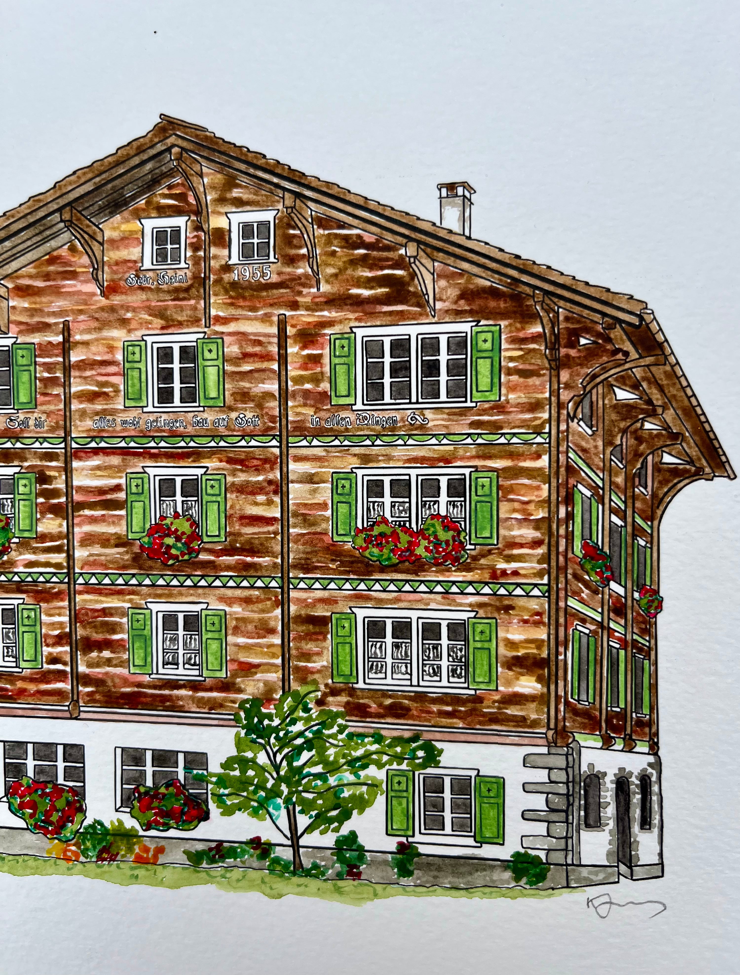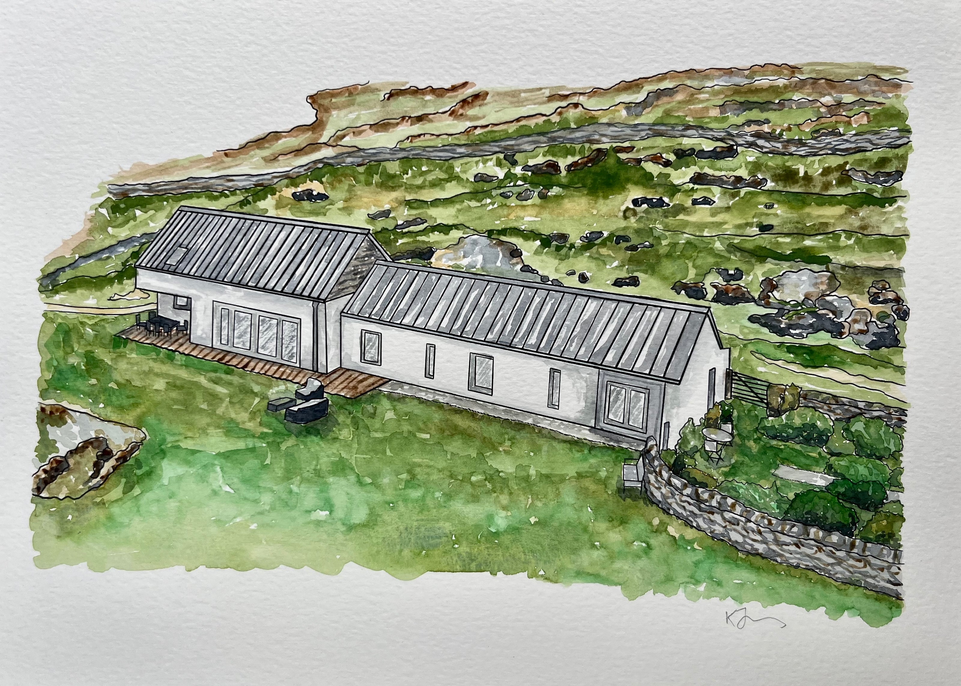 All homes are available with or without plants in my Crafty Brum style in A4. The pieces are hand drawn and painted with a watercolour finish.