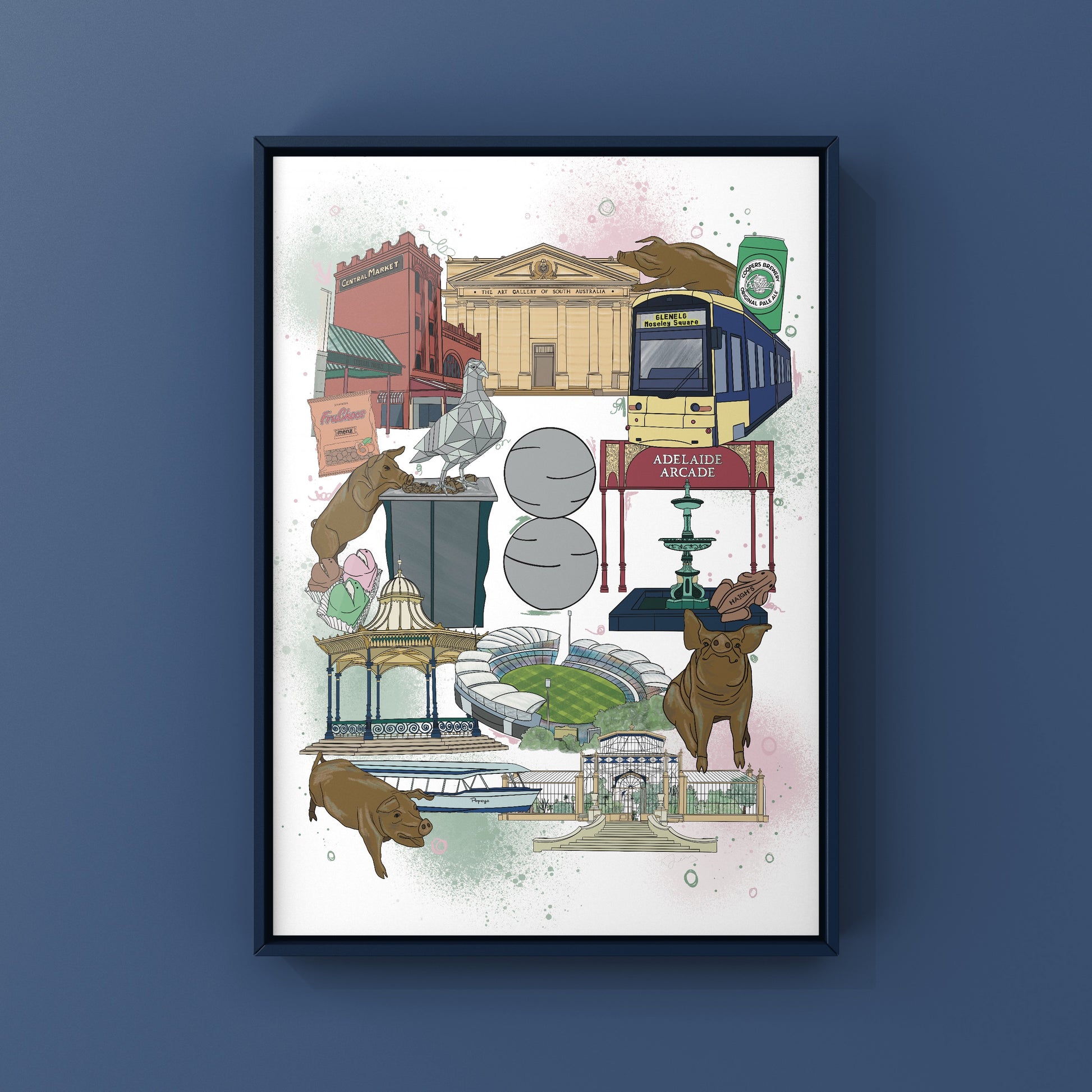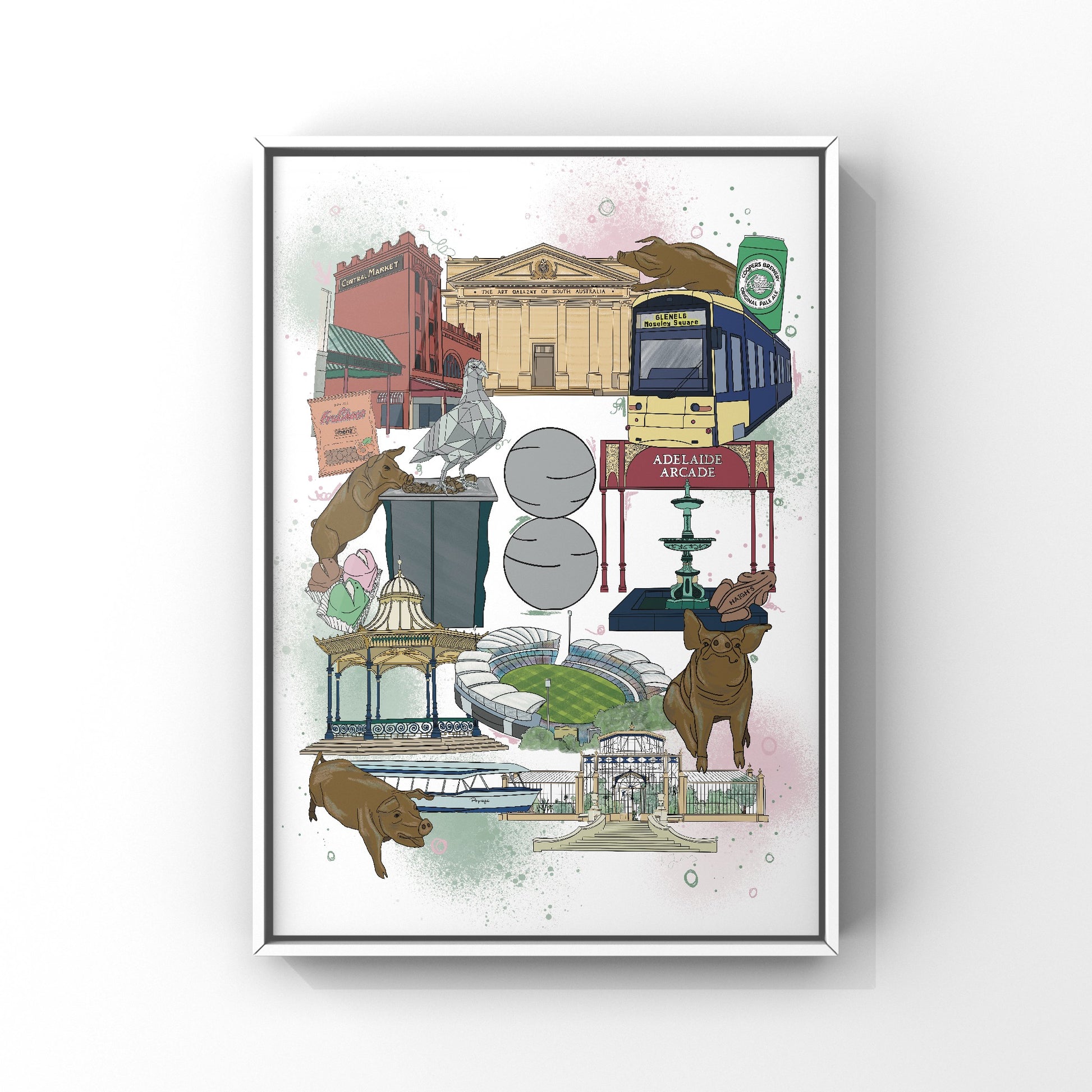 Adelaide, we've got giant, shiny balls, a fancy oval, fountains and The Central Market. This print would the perfect gift for any South Aussie or for a visitor to commemorate their time here.