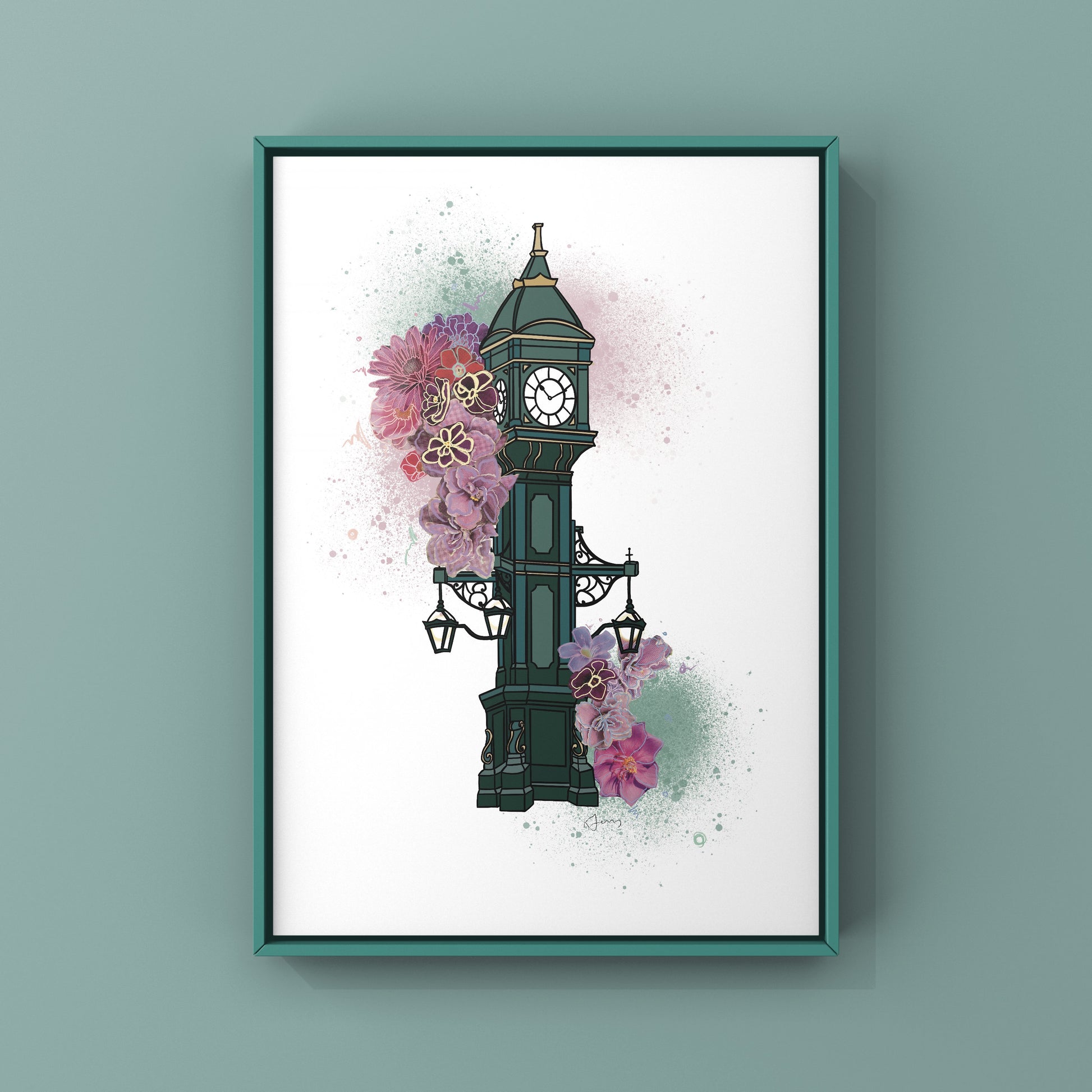 Jewellery Quarter Chamberlain Clock Botanical Print