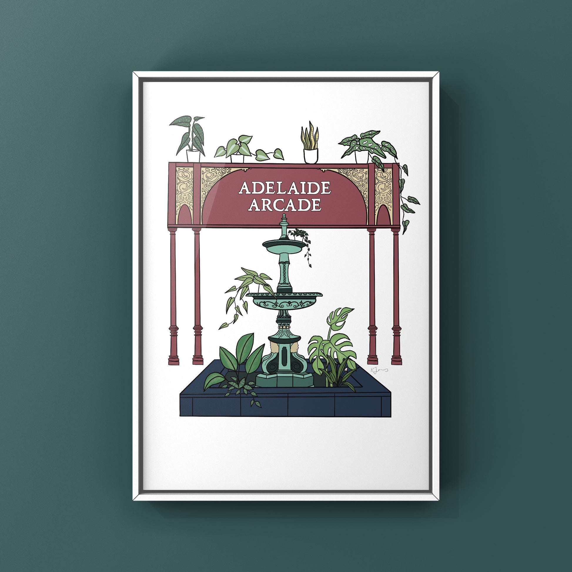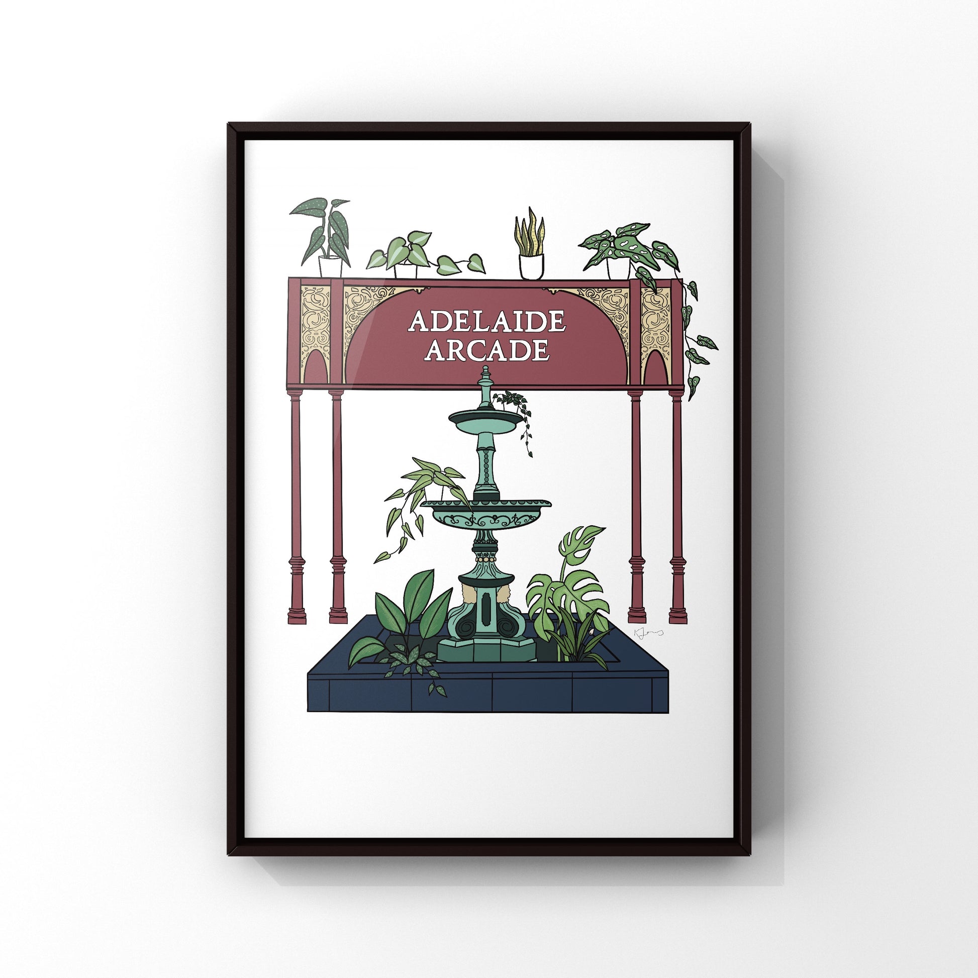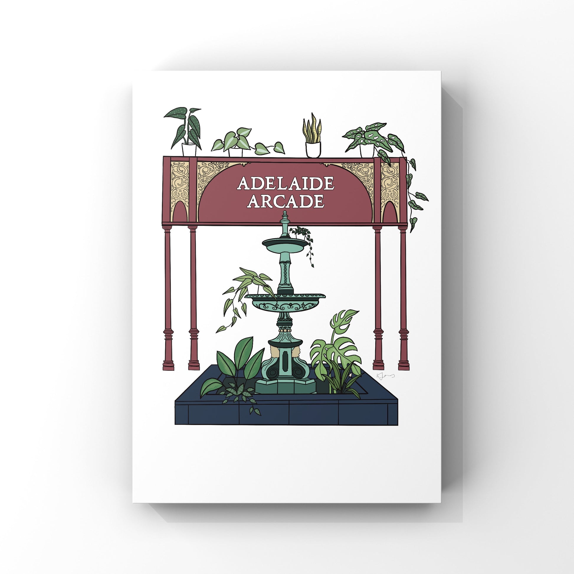 This design depicts the iconic Rundle Mall fountain and arcade entrance with a botanical twist. This piece would the perfect gift for any South Aussie or for a visitor to commemorate their time here.
