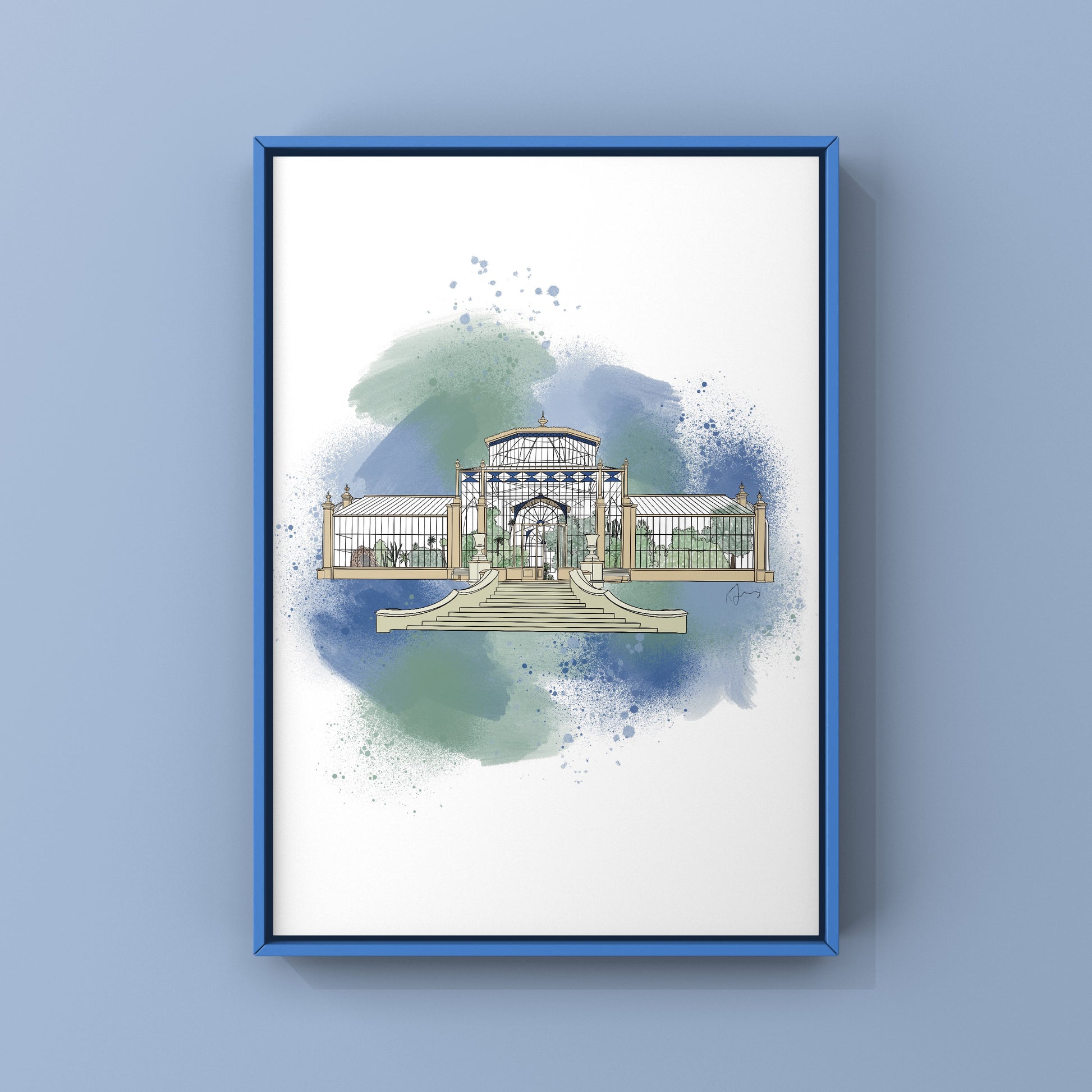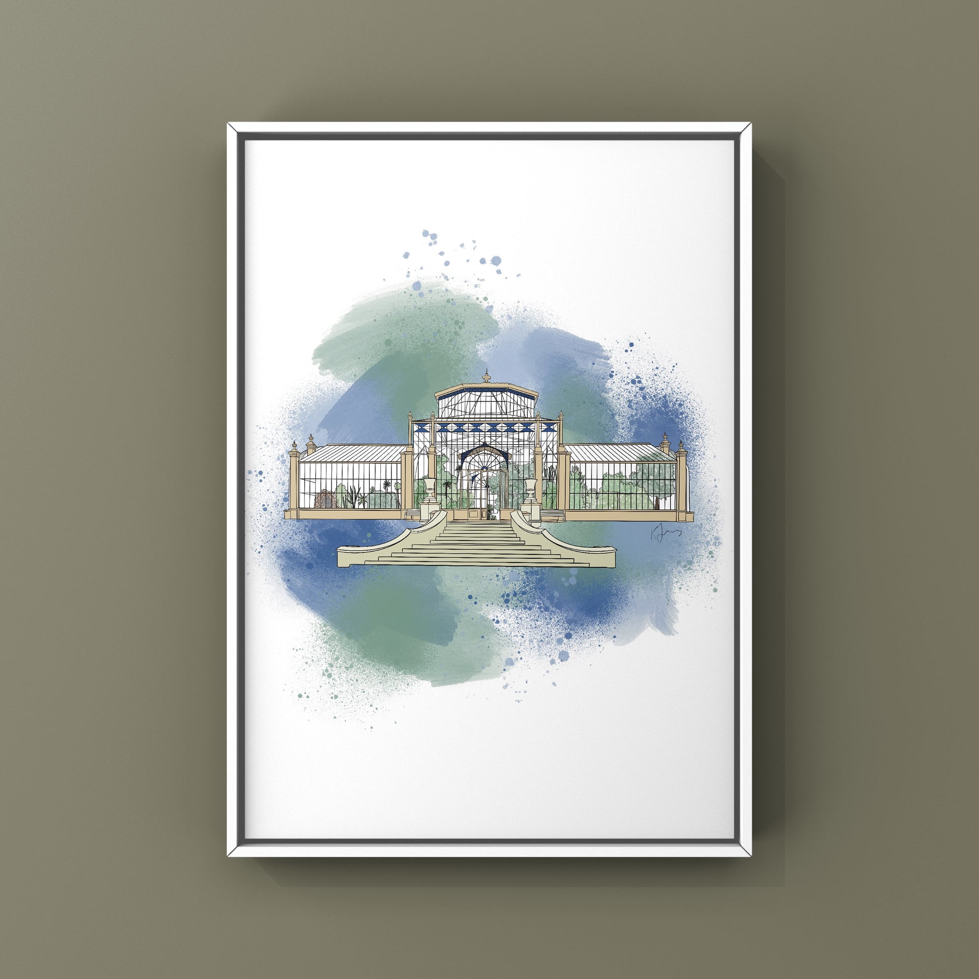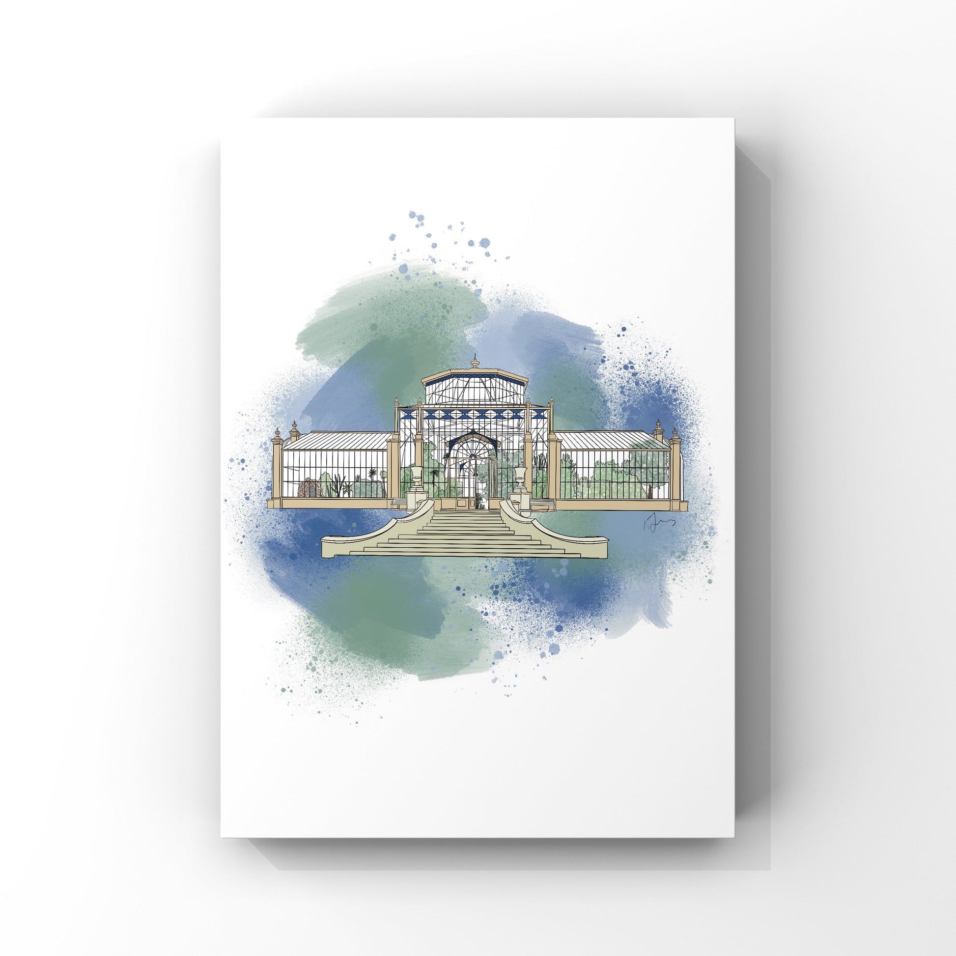 The striking Palm House sits in the centre of our Botanical Gardens. This print is my depiction of the glasshouse.