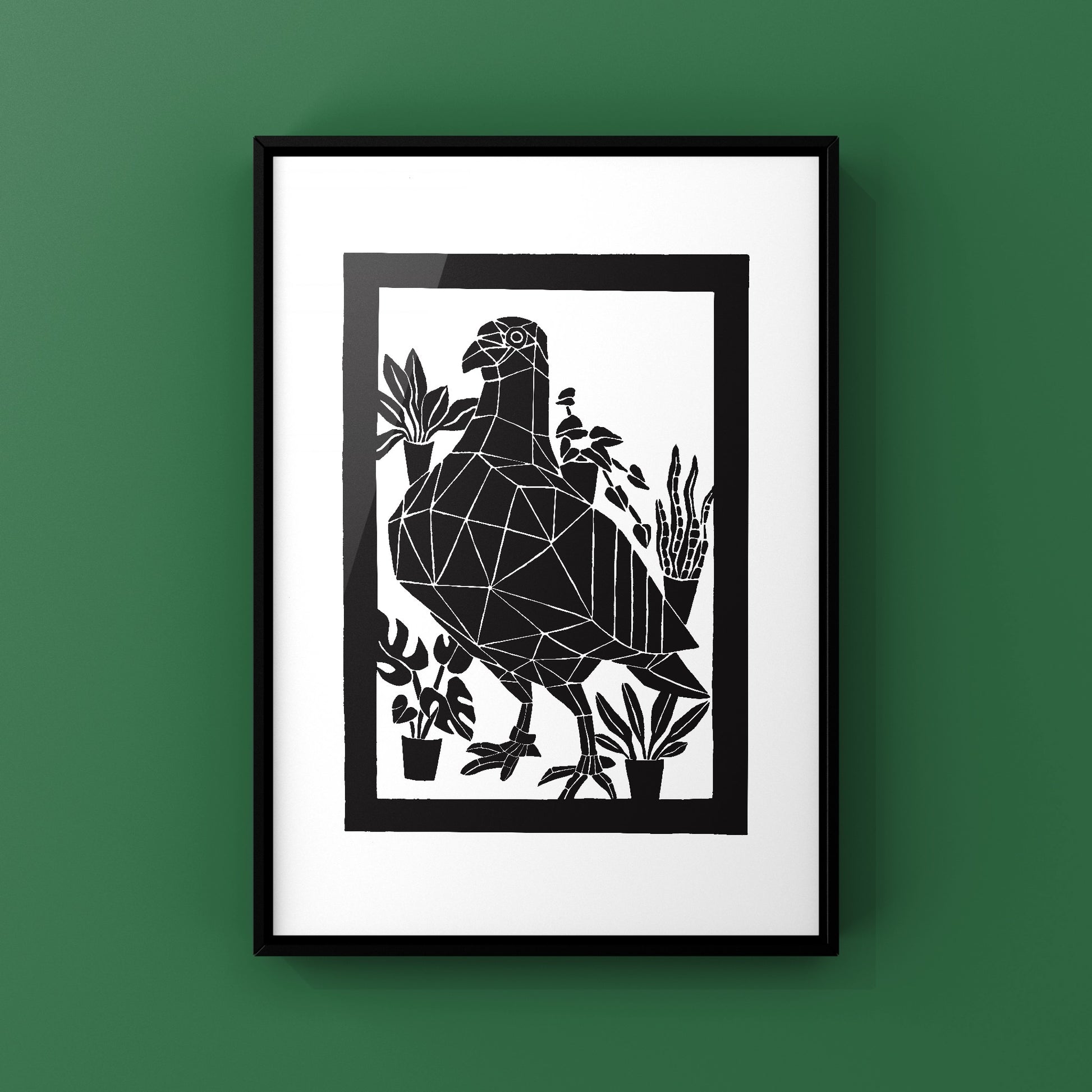 It's Rundle Mall's latest animal addition- The Pigeon! This lino print captures the pigeon, with a botanical twist!