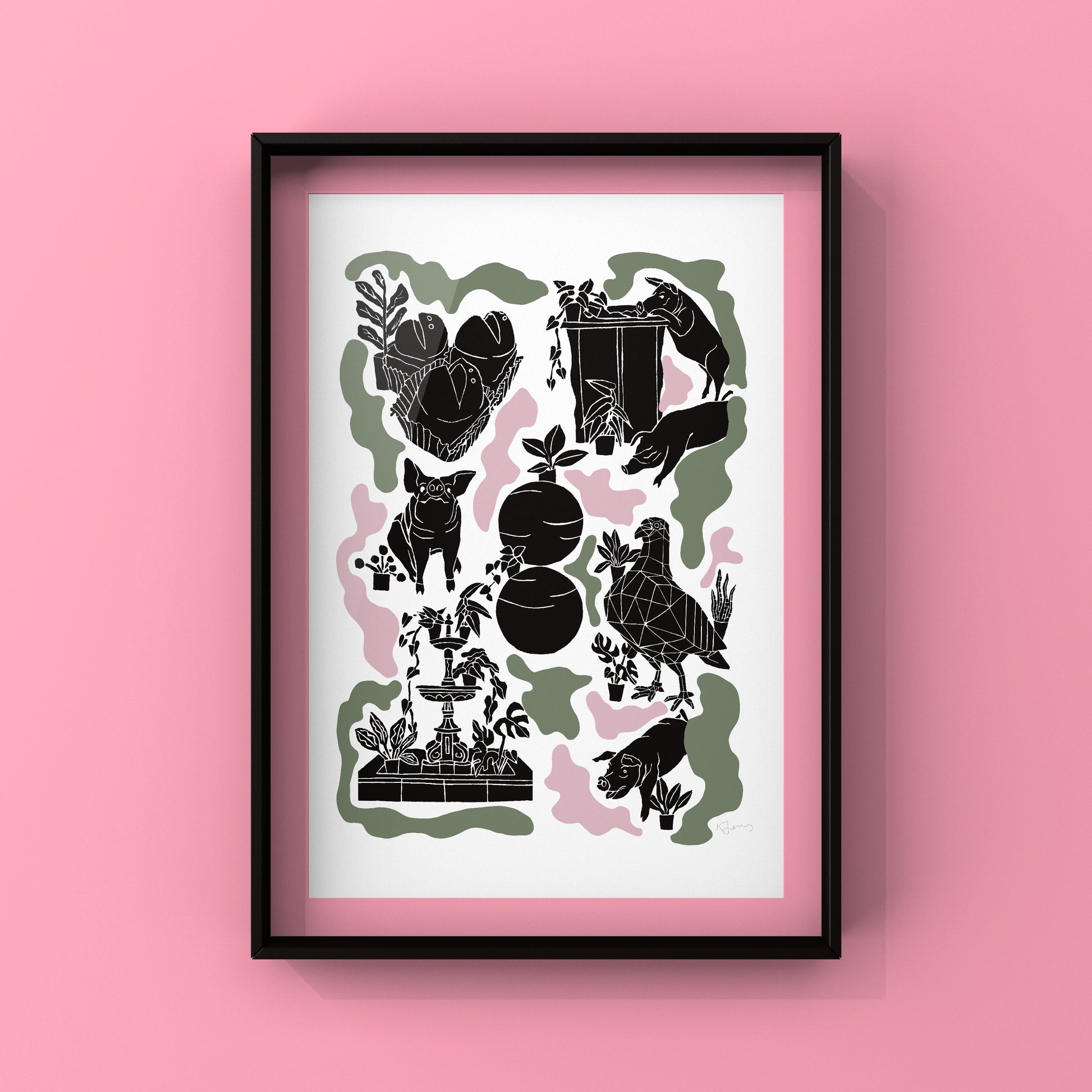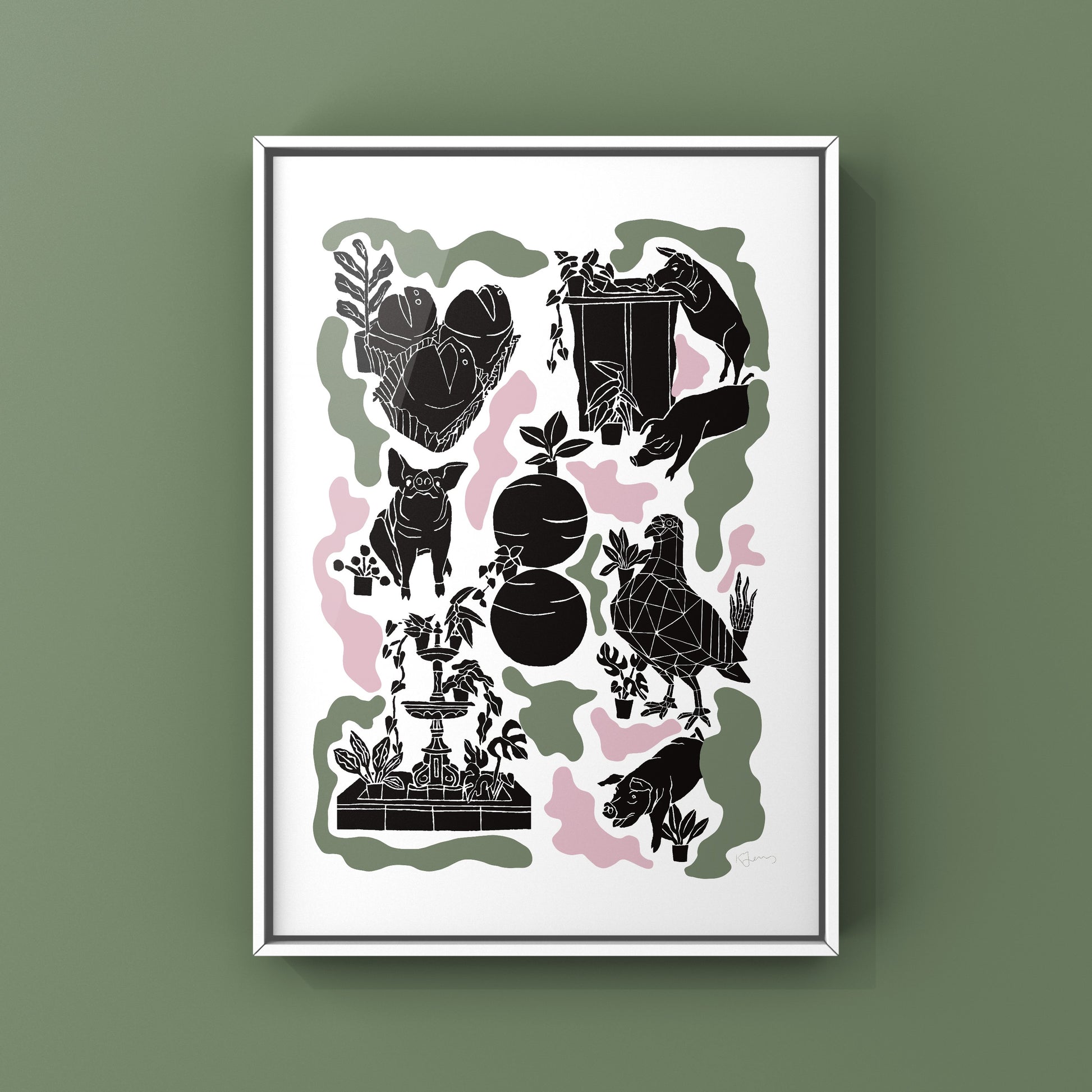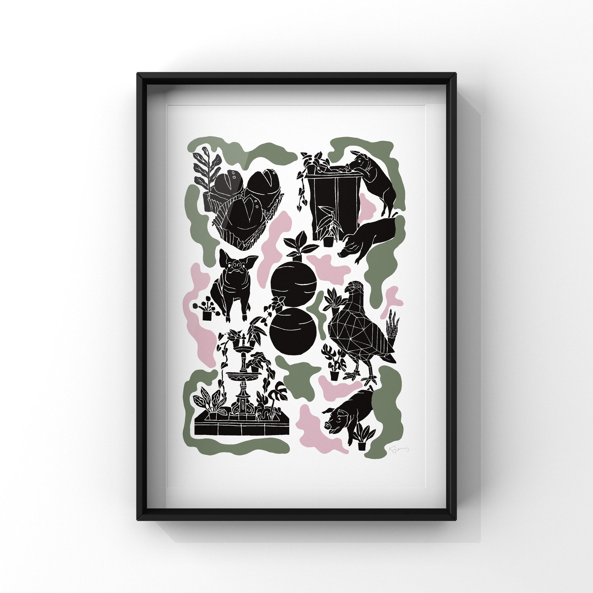 Pigs, Balls, frogs and a geometric pigeon? Just Adelaide things! This print would the perfect gift for any South Aussie! This print is a collation of individual lino prints, finalised digitally.